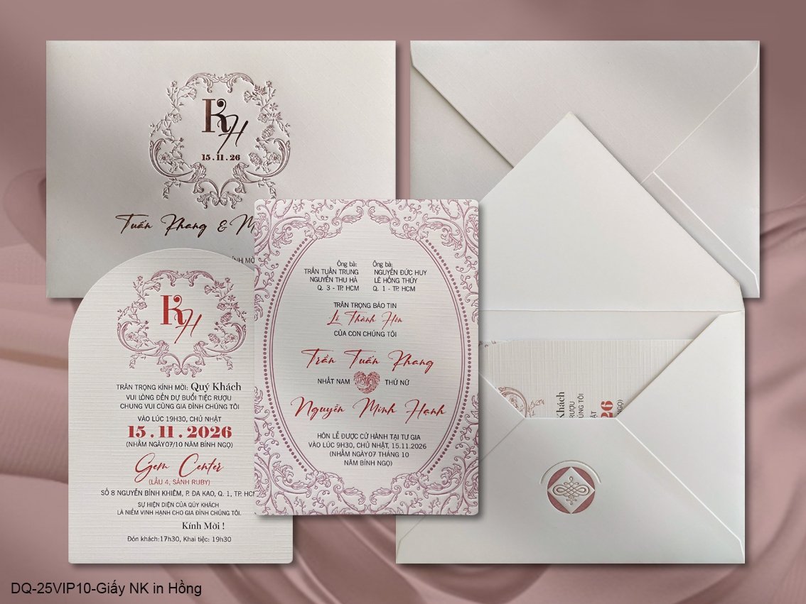 Thiệp cưới DQ-25VIP10-Giấy NK in Hồng